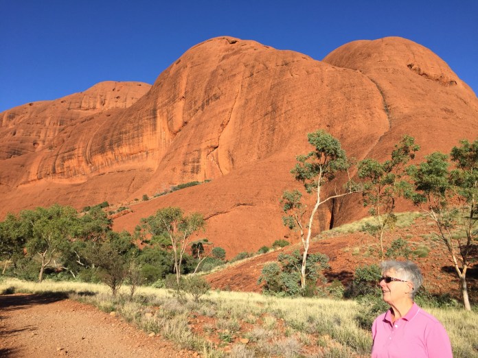 King’s Canyon was as good as we expected. The caravan park at King’s Canyon “Resort” is a good outback park, different to most in that dingos roam freely throughout the park, looking for food, day and night. We enjoyed the 3 hour rim walk around the canyon. The first climb was steep but the scenery around the rim is amazing, certainly worth the exertion. Happy hour sessions at the park were good fun although the sunsets were not as good as we have seen elsewhere because the sky was overcast.