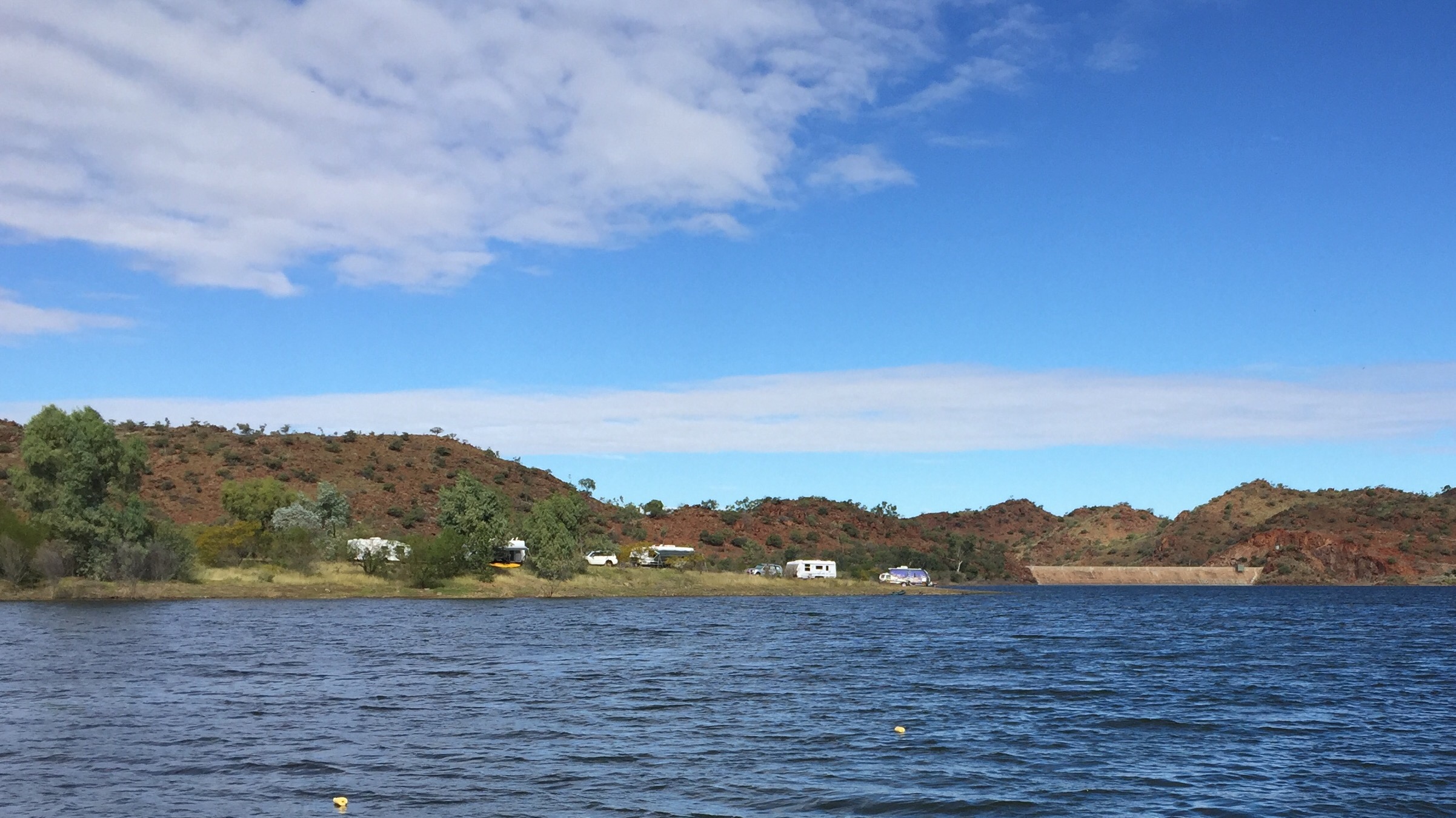We are at Corella Dam, about 65 km east of Mt Isa, Qld. Yes I did say Qld. We had intended going west from Darwin to the Kimberley region and especially the Gibb River Road but the fridge problem that we have had for a couple of weeks persisted so we decided to go east and south into cooler Qld instead.
