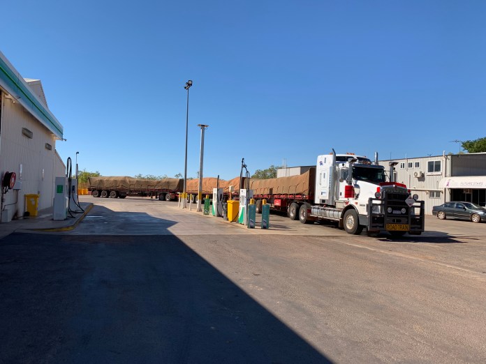 Road trains such as these are 53 m long and usually travel at 100 kph.