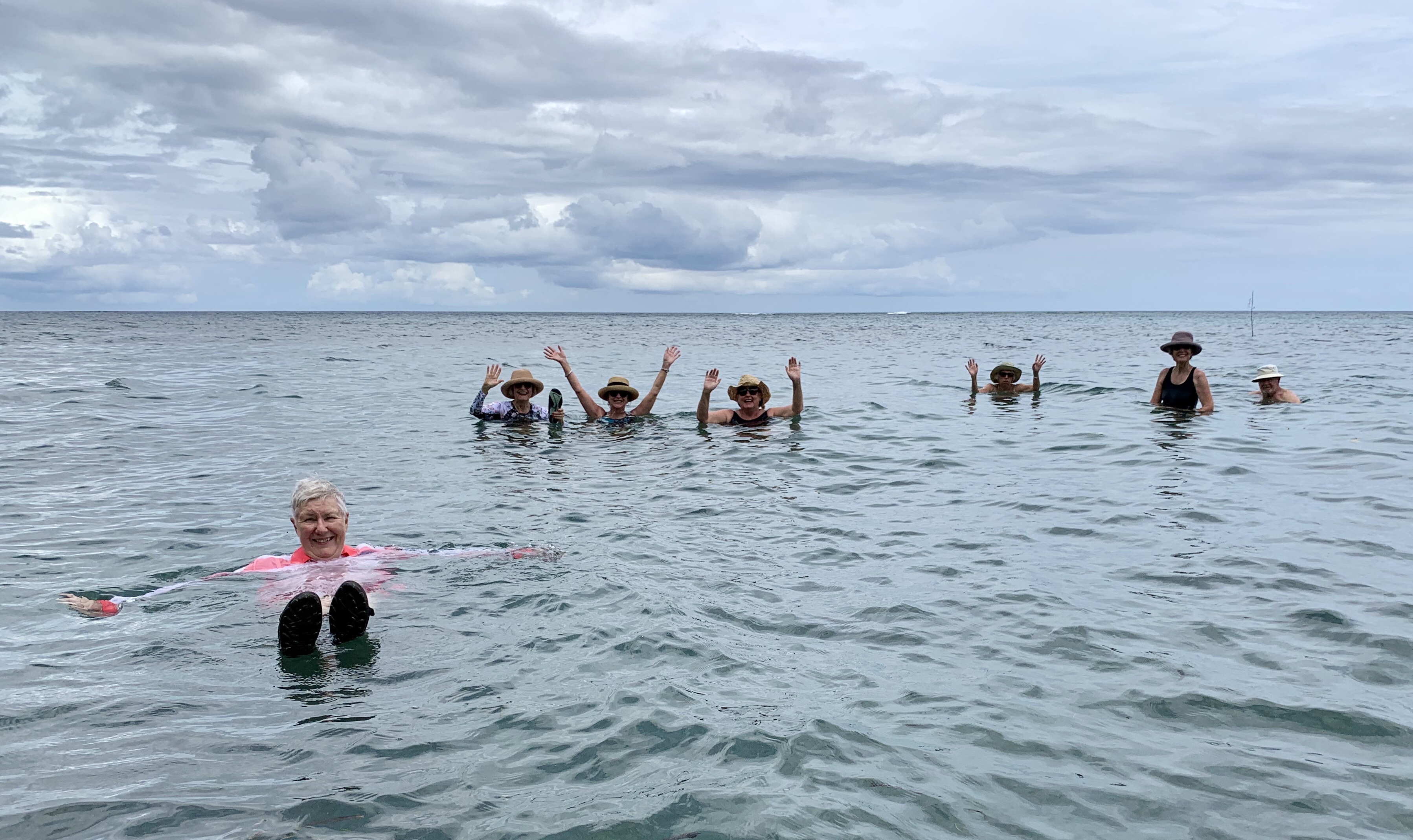 Jo, 2nd from left, relaxing on a tropical island while Ted was snorkeling nearby