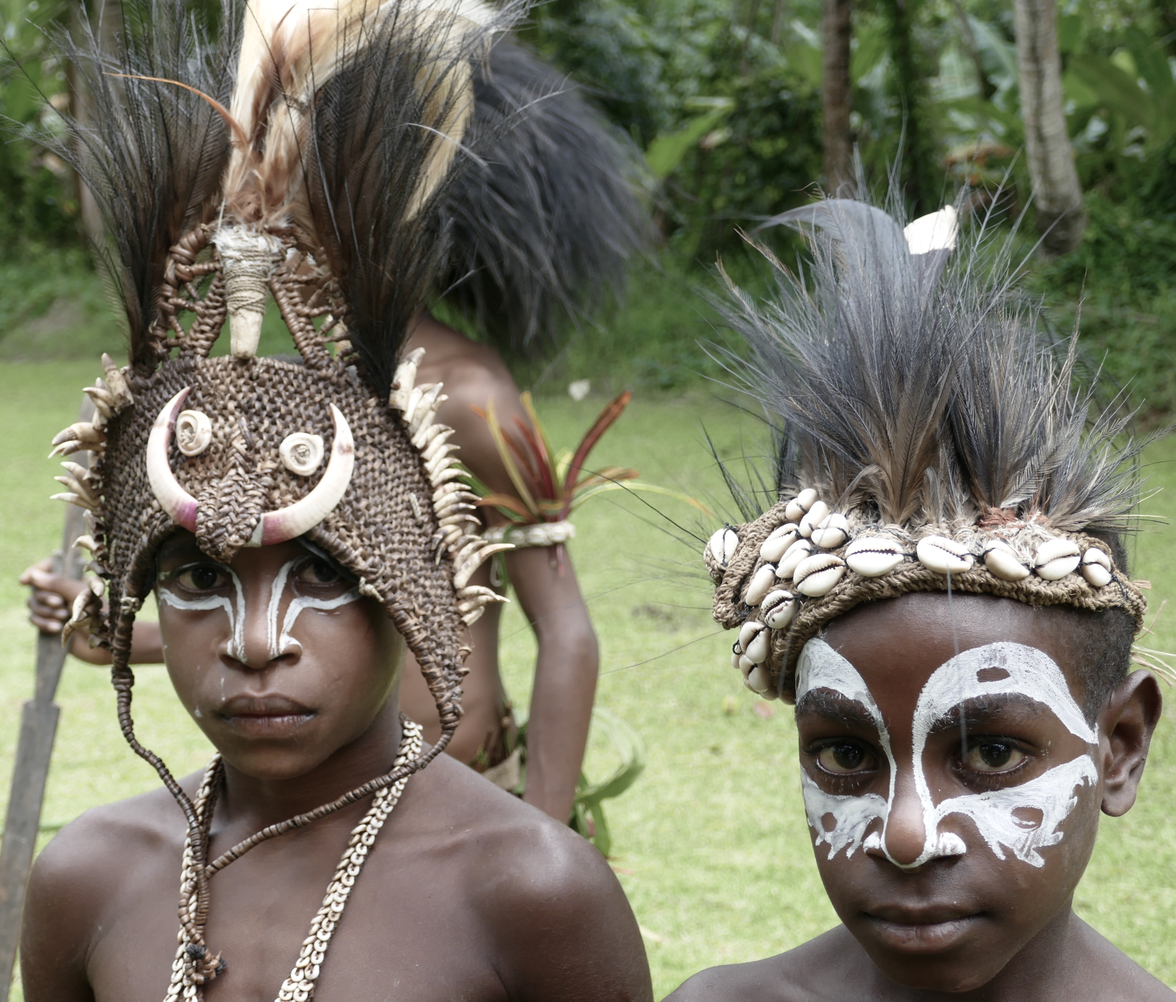 Several young men and boys wore their traditional costumes in support of the initiates and possibly to welcome us.