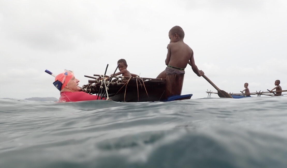 Back on board True North we cruised for several hours to the River mouth, again with people paddling out to meet us along the way. We still had some basketballs left and there was much excitement when they were tossed into the water.