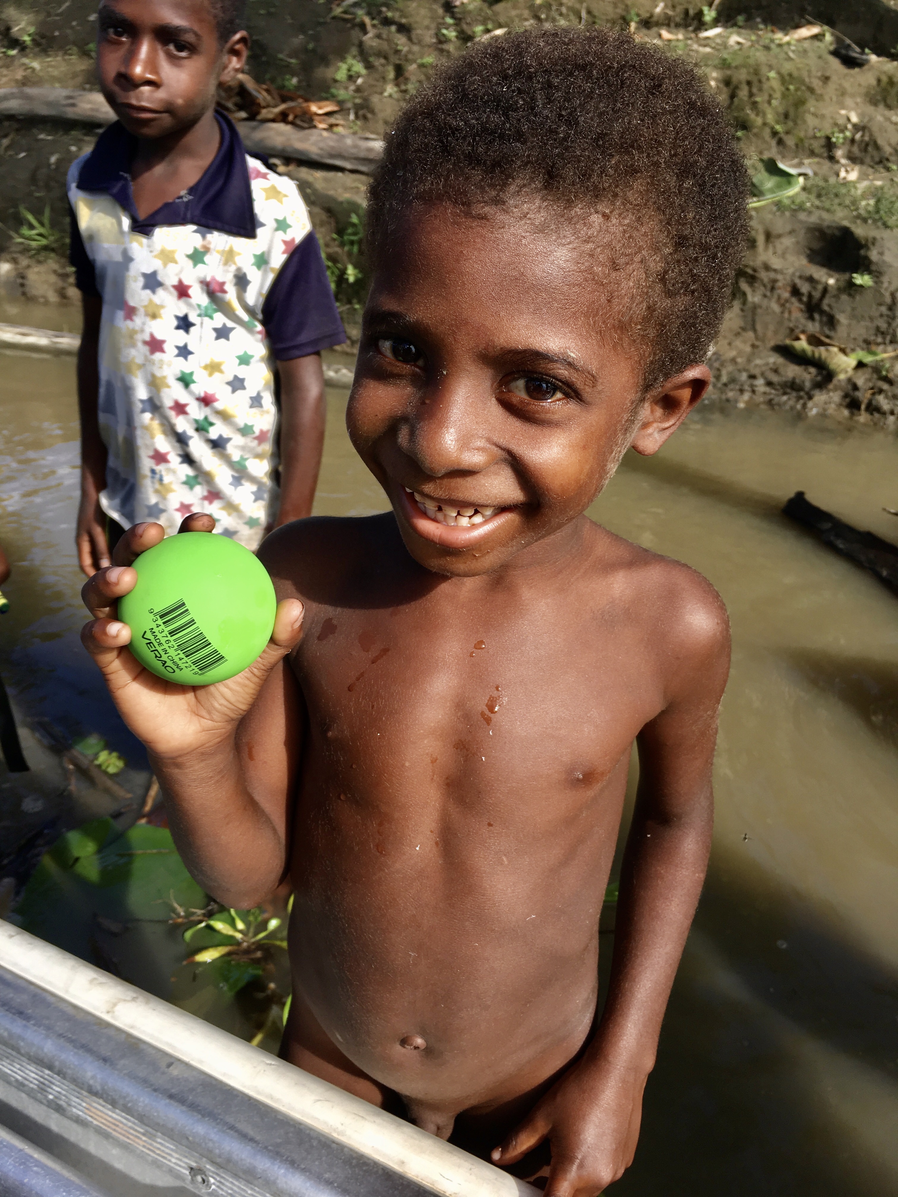 Kids 200m from the shore in the middle of crocodile territory, paddling in a race to get a ball